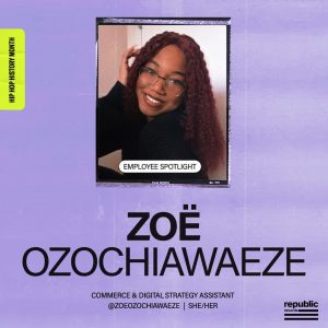 Zoë Ozochiawaeze, our Commerce & Digital Strategy Assistant, shares her hip hop heavy hitters and thoughts on hip hop culture. Continue to celebrate Hip Hop History Month with us year round. Name: Zoë Ozochiawaeze Job Title: Commerce & Digital Strategy Assistant Instagram Handle: @zoeozochiawaeze Preferred pronouns: She/Her/Hers Questions/Answers: What do you think the industry could […]